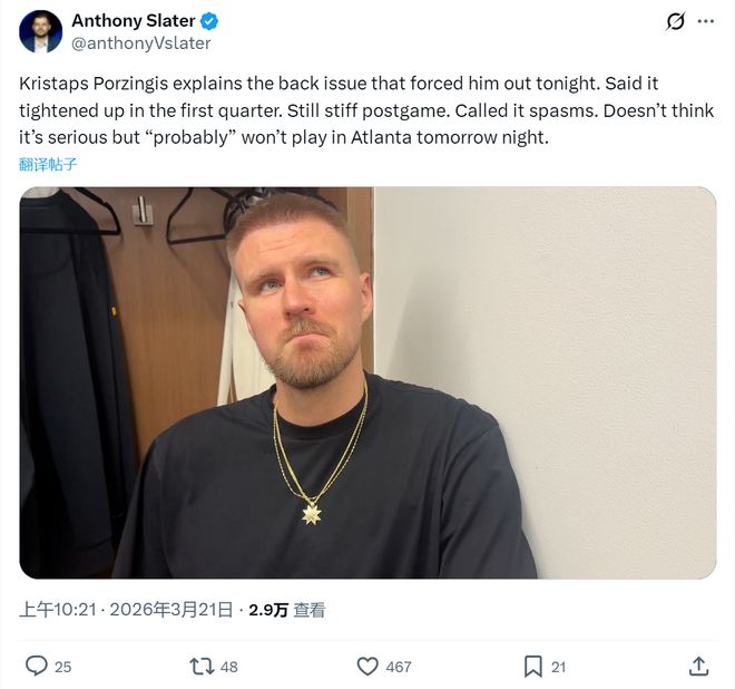 第二节还剩5分钟,波神背部受伤,直接退赛。全场只打了10分58秒,5投1中,5分3篮板2盖帽。赛后他说:“腰背依然很僵硬,明天打老鹰应该不上。”