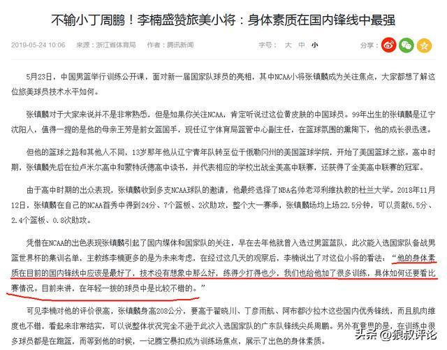 张镇麟:丁彦雨航是我们这代小前锋行列,很难逾越的一座大山