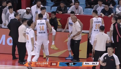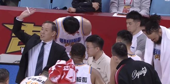 不妨来看看北京最后一攻之前,布置战术时发生了什么,在姜伟泽2罚1中后,北京还有最后4.7秒机会,暂停期间,光头助教布鲁顿拿出了战术板和笔来到球员中间准备布置战术,许利民二话没说直接一把拿过了助教手里的战术板,自己亲自画起了战术,在战术板被抢走后,布鲁顿有些失望的又走回了替补席。