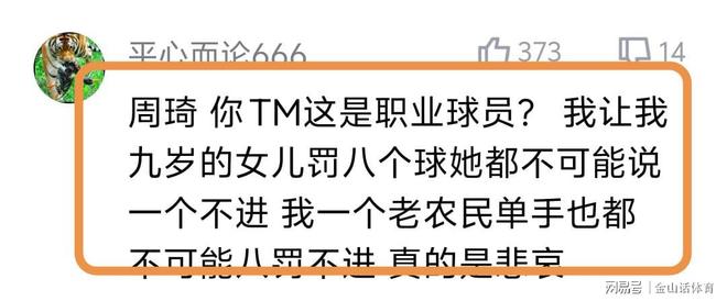 “周琦这罚球0/8,是职业球员?真是笑话。就这进取心,在NBA饮水机都看不明白真是有原因的。”;“职业球员,上场14罚中5,这场更离谱,8罚全飞,我平时不打篮球,5罚至少也能进一个”“8中0,和街溜子有啥区别?”……