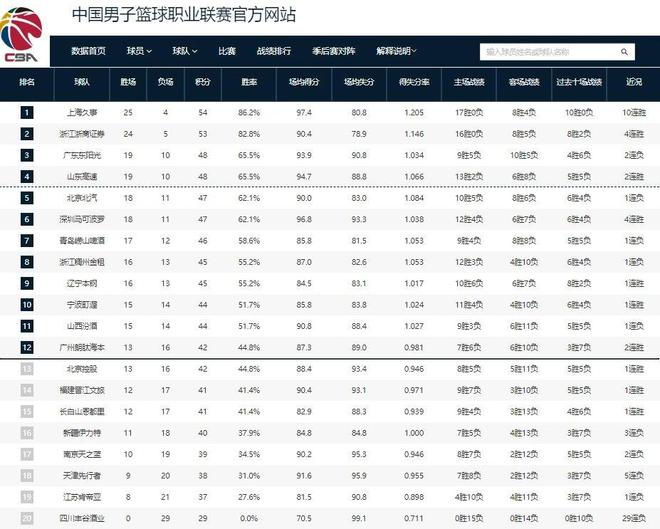 CBA最新排名!广东被上海三杀,北京爆冷辽宁大逆转 新疆山西输球