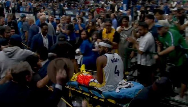 勇士队在那场比赛里跟达拉斯小牛队进行了一场加时大战,惊险获胜,但却收到了非常坏的消息。在加时赛里的一次快攻反击,勇士队的穆迪自己持球冲击篮筐,没想到在无接触的情况下突然受伤,直接倒地。