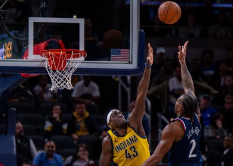 卢卡射中第38分后,微笑跟里夫斯打招呼;看特劳雷要点名勒布朗,自己主动换防,特劳雷混乱,卢卡断球,喂里夫斯反击三分:打停了网。