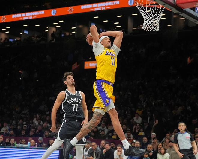下半场回来,场上依旧是打得难分难解,东契奇与扎威冲突各吃技犯,前者下场比赛将禁赛,末节僵持打不开局面的情况下里夫斯站了出来,他个人连中三分球并造杀伤帮助湖人拉开两位数领先,东契奇重新登场内外开花终结比赛,最终湖人116-99大胜篮网,送给后者十连败。