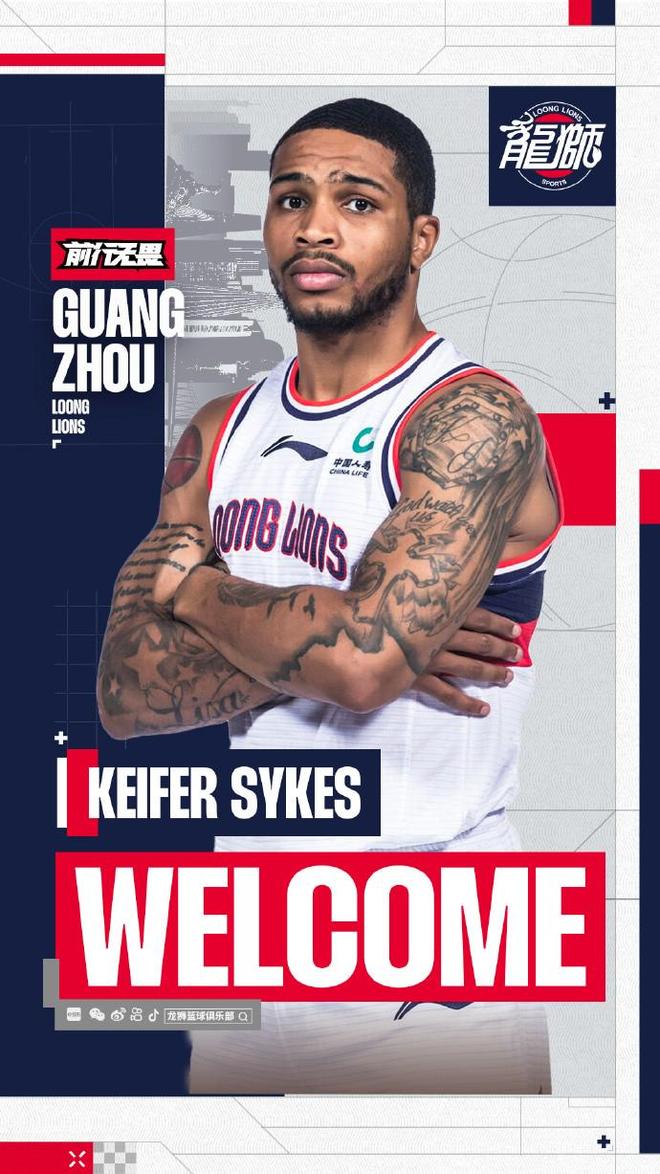 广州龙狮篮球俱乐部正式宣布:与凯弗-赛克斯(Keifer Sykes)完成签约,待向CBA公司报送注册材料并经审核、公示通过后,赛克斯将代表广州朗肽海本队出战接下来的CBA联赛。