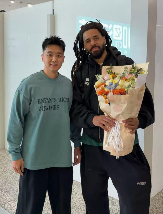 南京同曦俱乐部总经理王震(左)与格莱美说唱歌手科尔 图/受访人供图