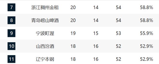 浙江和青岛还在保持竞争,不过青岛这轮输球了,他们和浙江是一个排名,这两支球队的位置在后续会持续保持竞争。