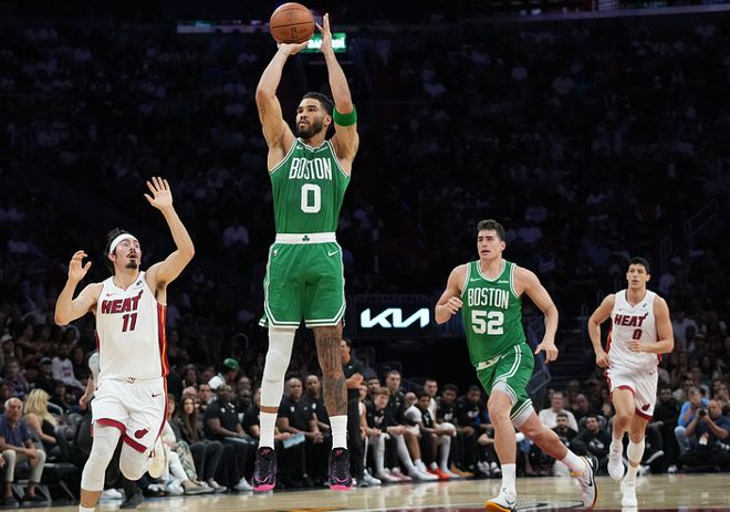双方合计狂轰45三分!布朗43+7绿军横扫热火 塔图姆25+18+11