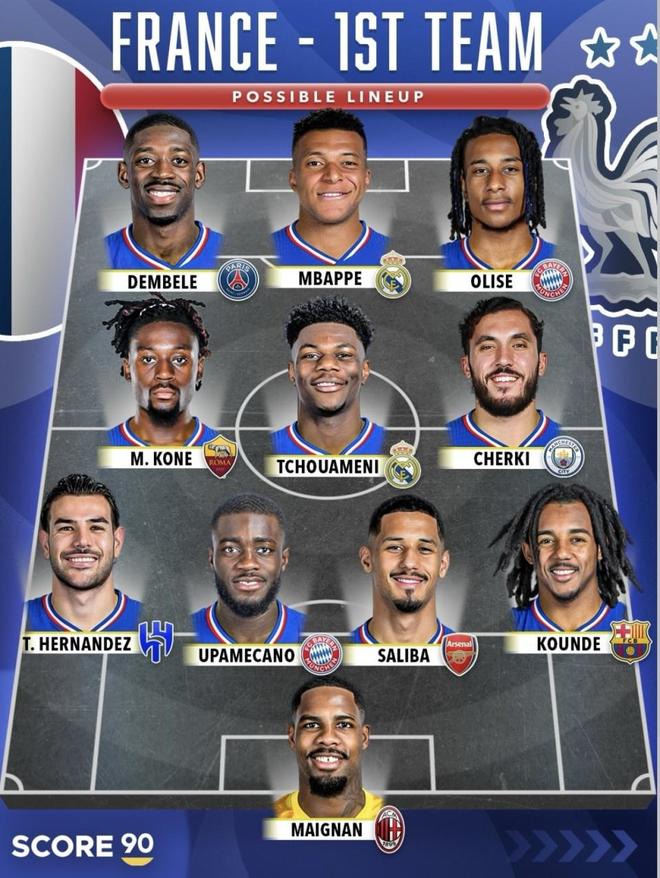 法国一队(可能首发|Score90)(年龄按2026年2月16日)