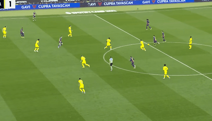 下半场回来,仅仅4分钟,佩佩角球开出制造混乱,无人盯防的盖耶乱战破门,2:1!随后巴萨进一步加强攻势,霍安加西亚禁区外解围出现巨大失误,但是对手面对打空门,却一脚推射偏出!佩德里上场,换下奥尔莫,加强中场的控制。
