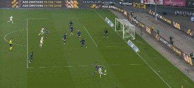 古铁雷斯头球攻门,皮球偏出球门