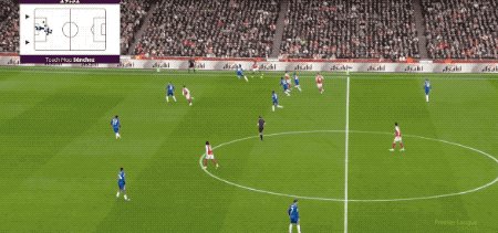 第50分钟,萨卡强行摆脱后的射门被挡了一下,桑切斯双拳将球击出,萨利巴直接吊射,桑切斯将球没收。