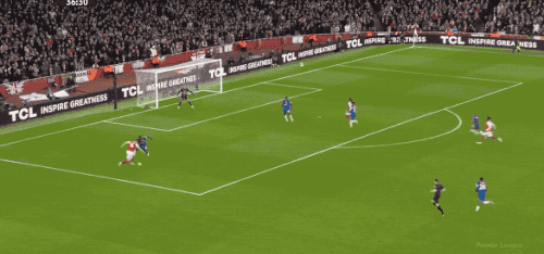 第37分钟,约克雷斯反击过程中选择传球,萨卡做球,廷贝尔虚晃一枪,但之后的射门绵软无力。