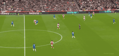 第10分钟,恩佐45度传中,首次在英超首发的萨尔凌空抽射,如同解围一般。