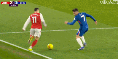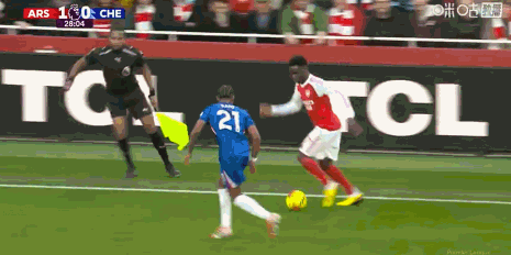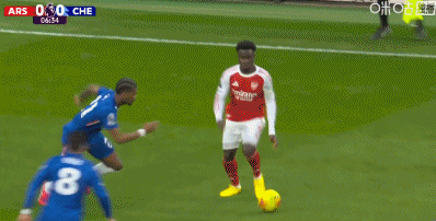 第12分钟,有点危险!桑切斯横传,萨尔停球遭到萨卡逼抢