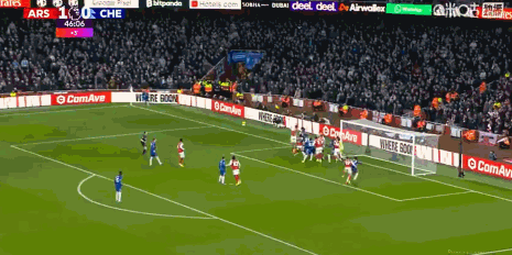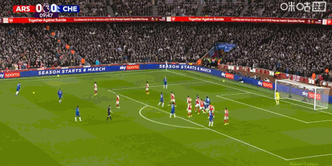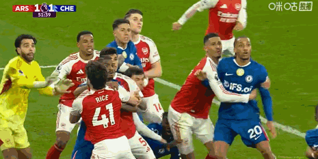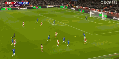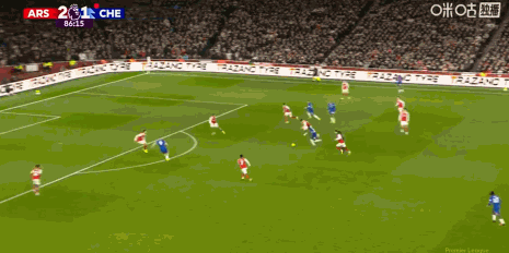 第29分钟,萨卡内切传球,赖斯放了高射炮