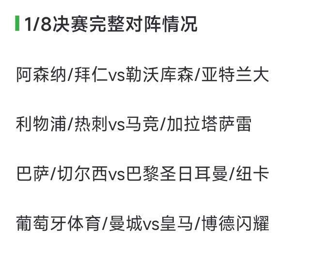 欧冠淘汰赛抽签将在2月27日晚上7点进行。