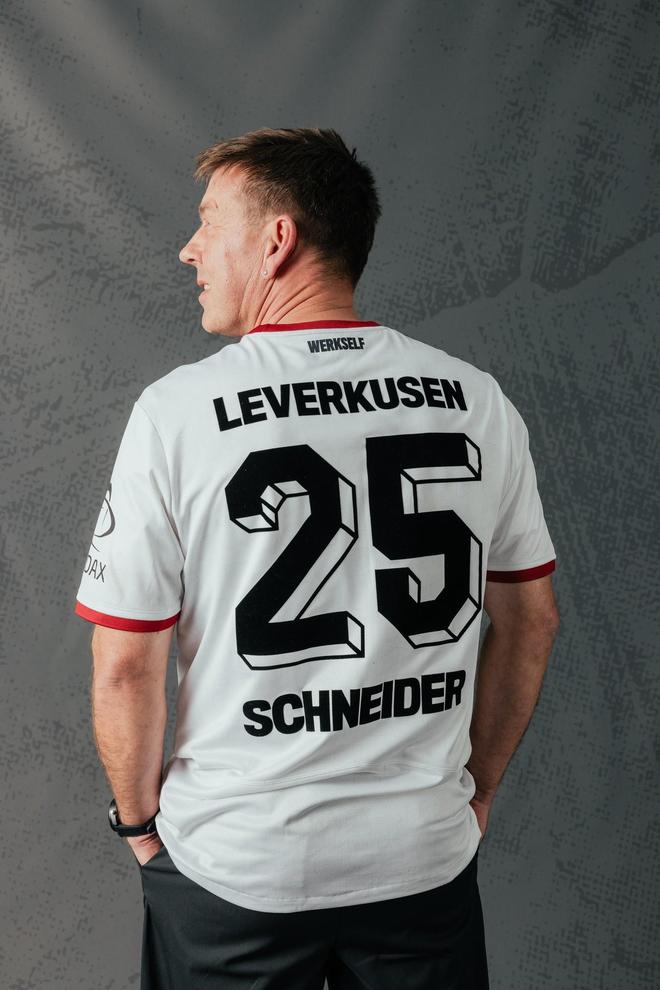 此外,后领下方印有“WERKSELF(厂队十一人)”字样,搭配复古风格字体以及黑化处理的德甲联赛臂章,使整件球衣在现代版型之中融入浓厚的怀旧气息。多位勒沃库森现役以及退役球员参与了球衣宣传照拍摄,包括德国前国脚施奈德等。