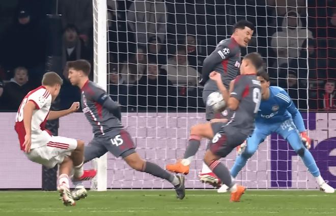欧冠附加赛轮次的证据确实表明了这一点。例如,在布鲁日对阵马德里竞技的比赛中,当球击中布鲁日的若阿金-塞时,尽管这名后卫背对来球,但在VAR回看后,还是判罚了点球。欧足联称若阿金-塞的右臂处于“不自然位置且远离身体”。