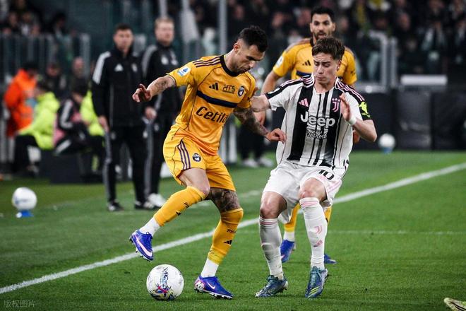 本场比赛上半场双方互交白卷,尤文进攻端陷入停滞,中锋位置缺乏支点与终结效率,多次威胁进攻难以转化为进球。下半场斯帕莱蒂调整奏效,球队彻底打开局面:第54分钟伊尔迪兹送出精准传中,坎比亚索后点头球破门打破僵局;第66分钟洛卡特利射门中柱,图拉姆补射扩大比分;第76分钟伊尔迪兹禁区内冷静抽射锁定胜局;补时阶段博加单刀破门,将比分定格为4-0。四位进球者分布于边路、中场与替补锋线,展现出球队中后场的进攻潜力,却也反衬出正统中锋输出不足的结构性短板。