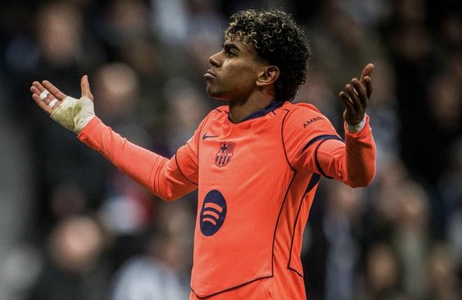 比赛最后时刻,奥尔莫在禁区内被绊倒,亚马尔骗过纽卡守门员将点球稳稳罚进。