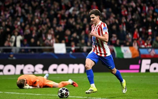 第14分钟,热刺后防线接连失误,滑倒等,马竞笑纳大礼。格列兹曼破门!