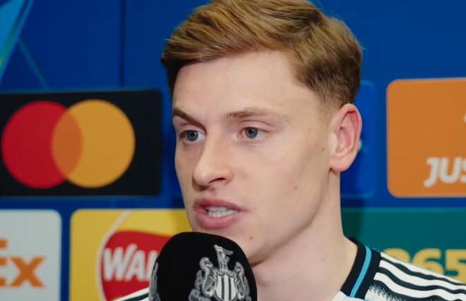 欧冠1/8决赛首回合,纽卡主场1-1战平巴萨,纽卡前锋哈维-巴恩斯赛后接受了俱乐部媒体的采访。