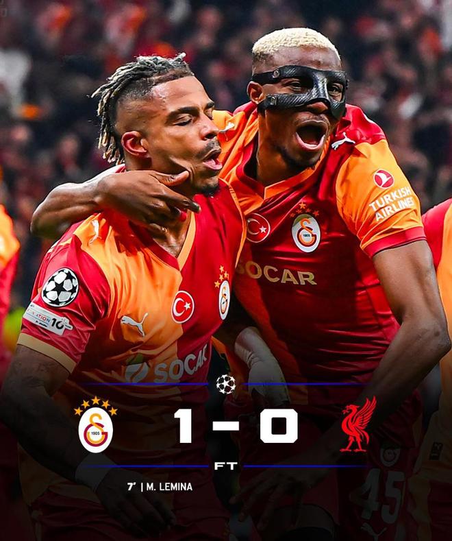 比赛开始仅7分钟,利物浦就遭遇打击。奥斯梅恩头球摆渡,勒米纳门前接力头球破门,加拉塔萨雷1-0利物浦,取得梦幻般开局。