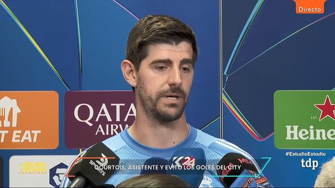 北京时间3月12日,在欧冠联赛1/8决赛首回合对阵曼城的比赛结束后,皇马门将库尔图瓦在混合采访区接受了媒体记者采访,复盘了球队在本场比赛中的表现。