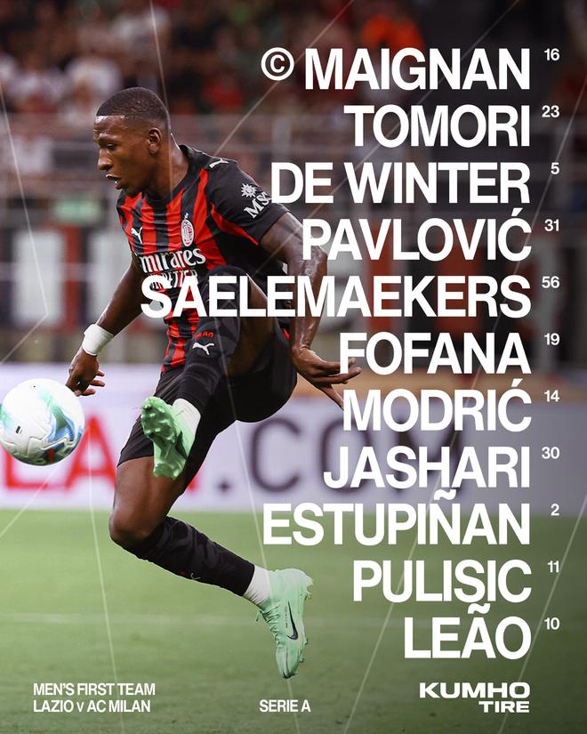 米兰首发:16-迈尼昂、23-托莫里、5-德温特、31-帕夫洛维奇、56-萨勒马克尔斯、19-优素福-福法纳、14-莫德里奇、30-亚沙里、2-埃斯图皮尼安、11-普利希奇、10-莱奥