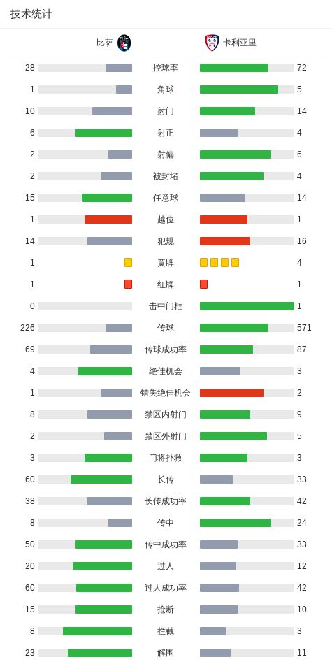 北京时间3月15日意大利足球顶级联赛第29轮,比萨主场对阵卡利亚里。比赛中,比萨球员莫雷奥罚入点球打破僵局,随后球队一名球员吃到红牌;之后卡拉乔洛打入两球完成梅开二度。卡利亚里方面,帕沃莱蒂打入一球,球队一名球员吃到第二张黄牌被罚下。最终比分比萨3-1卡利亚里。