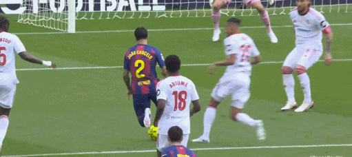第38分钟,贝尔纳尔传球发生折射,奥尔莫破门,巴萨3-0塞维利亚