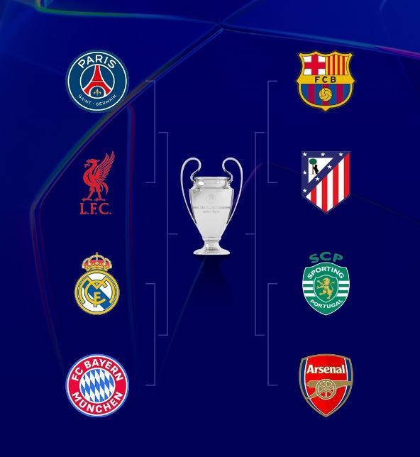 万众瞩目的欧冠联赛,在本周周中迎来了八强争夺战次回合的较量,经历四场大战后,欧冠八强最终对阵出炉,分别是大巴黎vs利物浦、皇马vs拜仁、巴萨vs马竞和葡萄牙体育vs阿森纳,占据三个席位的西甲成为了最大赢家,意甲则没有一支球队闯入1/4决赛。