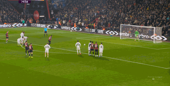 如果是在客场,伯恩茅斯可能就会顺着这个趋势开始脱节,直至出现真正的大问题,但在主场,他们还是摇摇晃晃站住了,从而在上半场末段打出了曼联的问题。