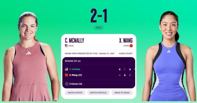 03月21日讯 WTA1000迈阿密站第二轮,29号种子王欣瑜4-6、6-1、0-6不敌麦克纳莉,无缘32强,阳光双赛遭遇背靠背首战出局。