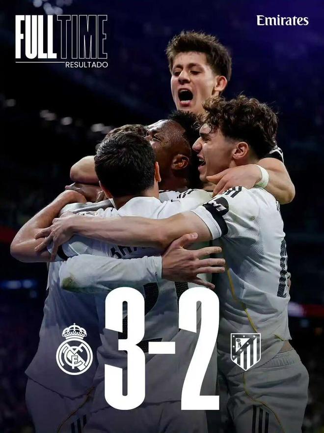 北京时间3月23日凌晨4点,本轮西甲迎来马德里德比,皇家马德里主场挑战马德里竞技。上半场比赛,巴尔韦德中柱,朱利亚诺·西蒙尼脚后跟妙传助攻卢克曼推射首开记录,半场战罢皇马暂时1球领先。下半场比赛,汉茨科送点,维尼修斯点射扳平比分,随后希门尼斯和队友传球失误,巴尔韦德断球后外脚背破门反超比分,莫利纳精彩世界波再度扳平比分,维尼修斯内切破门完成梅开二度,巴尔韦德染红。最终,皇家马德里主场3比2复仇马德里竞技,取得各项赛事5连胜。