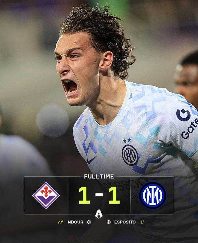 面对排名靠后的佛罗伦萨,国米开场仅1分钟就由年轻前锋皮奥·埃斯波西托破门,取得梦幻开局。但此后蓝黑军团多次错失扩大比分的机会,给了对手喘息空间。