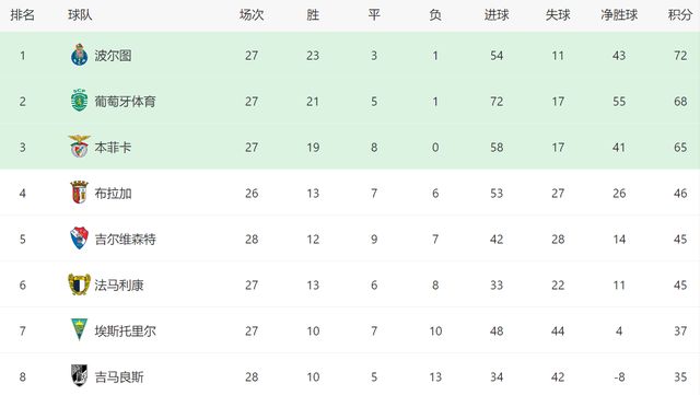 之前因为要踢欧冠,葡萄牙体育主场和通德拉的比赛延期,此役过后,葡萄牙体育在积分榜继续排名第二,他们在同场次的情况下领先本菲卡3分,而且净胜球优势巨大(联赛没结束,积分相同先按净胜球优势排名),哪怕本轮本菲卡能够在客场击败卡萨比亚,相信他们也很难反超葡萄牙体育。值得一提的是,葡萄牙体育目前落后波尔图4分,争冠并非遥不可及的目标。