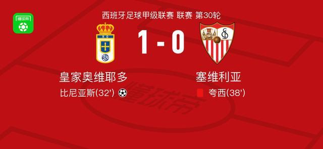 皇家奥维耶多1-0塞维利亚,比尼亚斯助球队取胜