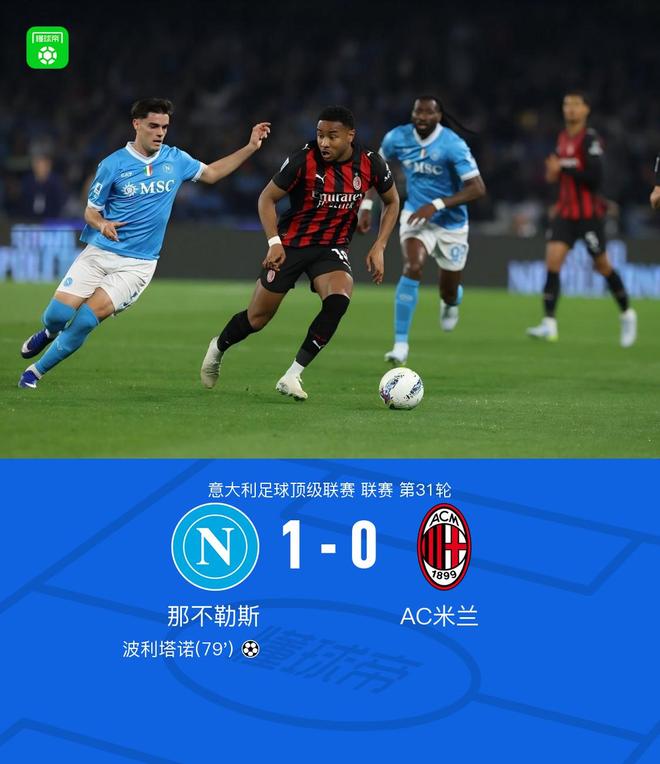 北京时间4月7日意大利足球顶级联赛第31轮,那不勒斯主场迎来AC米兰的挑战。下半场奥利韦拉左路起球,波利塔诺后点包抄打入制胜球,最终那不勒斯以1-0的比分战胜AC米兰。