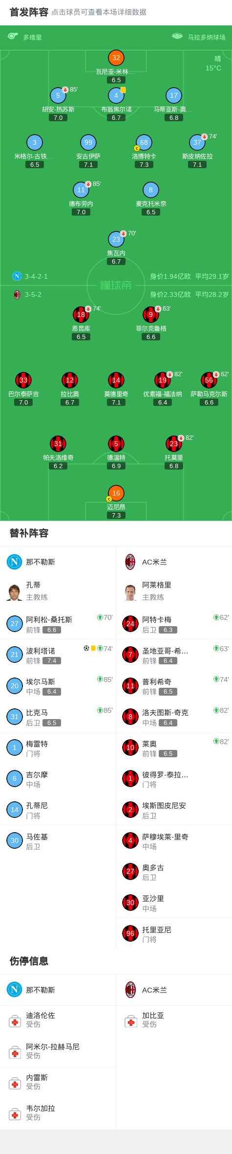 第79分钟,那不勒斯左路起球,波利塔诺后点射门打进,那不勒斯1-0