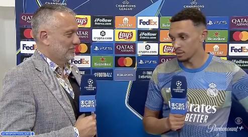 欧冠1/4决赛首回合,皇马1-2输给拜仁,皇马后卫阿诺德赛后接受了CBS体育的采访。